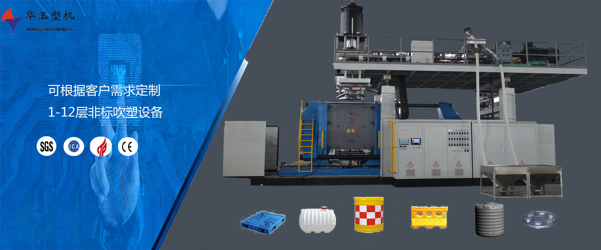 濰坊市華玉塑料機(jī)械有限公司創(chuàng)辦于貳零零貳年,是超大型全自動中空吹塑設(shè)備專業(yè)生產(chǎn)廠家。公司融合國內(nèi)外先進(jìn)技術(shù)和理念,專業(yè)設(shè)計(jì)、生產(chǎn)、銷售一層到十層的大型全自動中空成型機(jī)組。我公司生產(chǎn)的各型號吹塑機(jī)可生產(chǎn)50升到30,000升的各類塑料水桶,噸桶、雙環(huán)桶、水馬、路錐、隔離墻托盤、桌板、浮筒、皮劃艇、工具箱包等中空制品。優(yōu)良的品質(zhì)、穩(wěn)定的性能、優(yōu)越的性價比使公司產(chǎn)品不僅暢銷國內(nèi)市場,并出口到亞洲、東南亞、中東、歐洲、北美、南美、非洲等80多個國家和地區(qū),深受客戶的好評...
